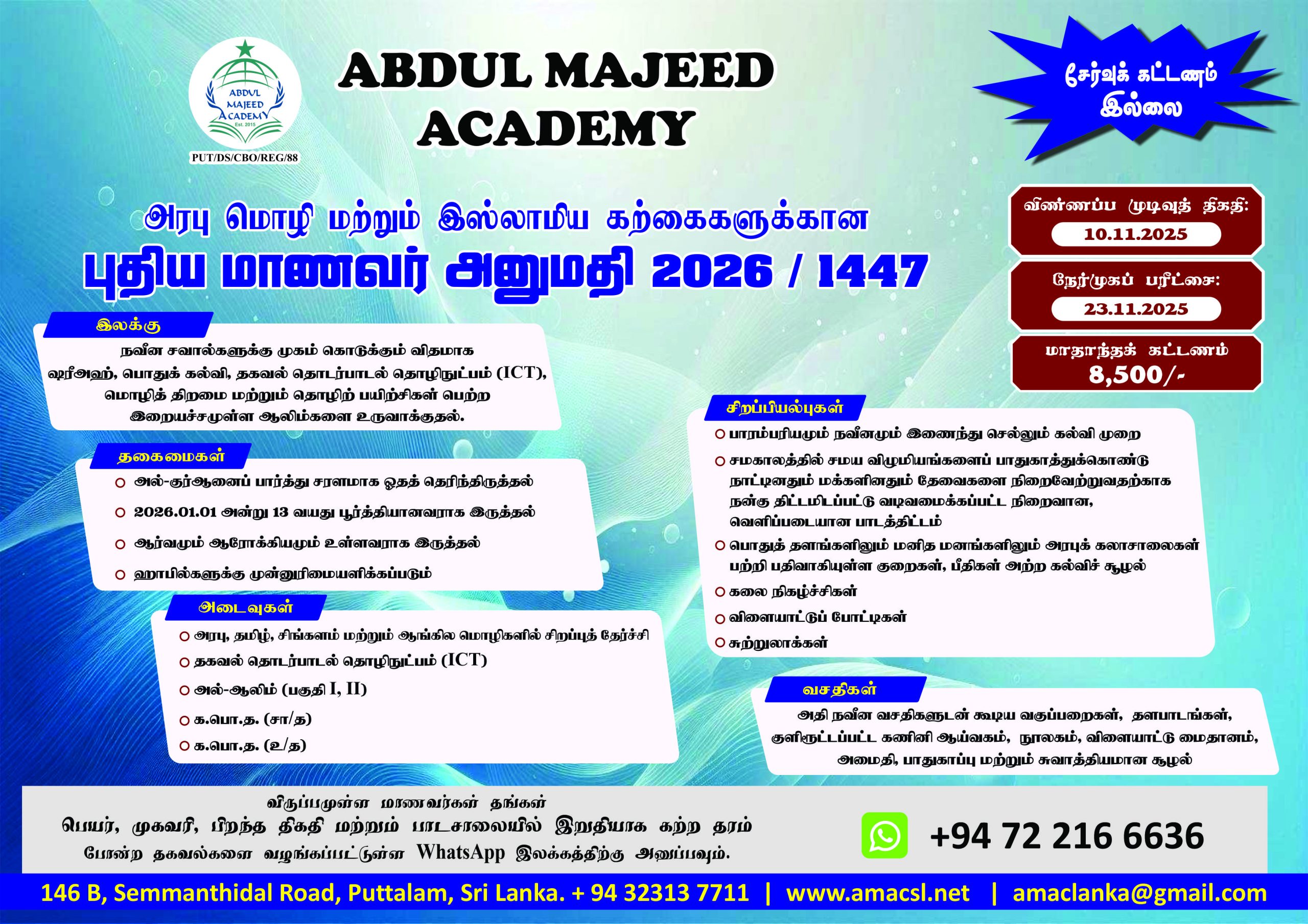 We warmly welcome you to the Abdul Majeed Academy, an academy for all with various educational opportunities.